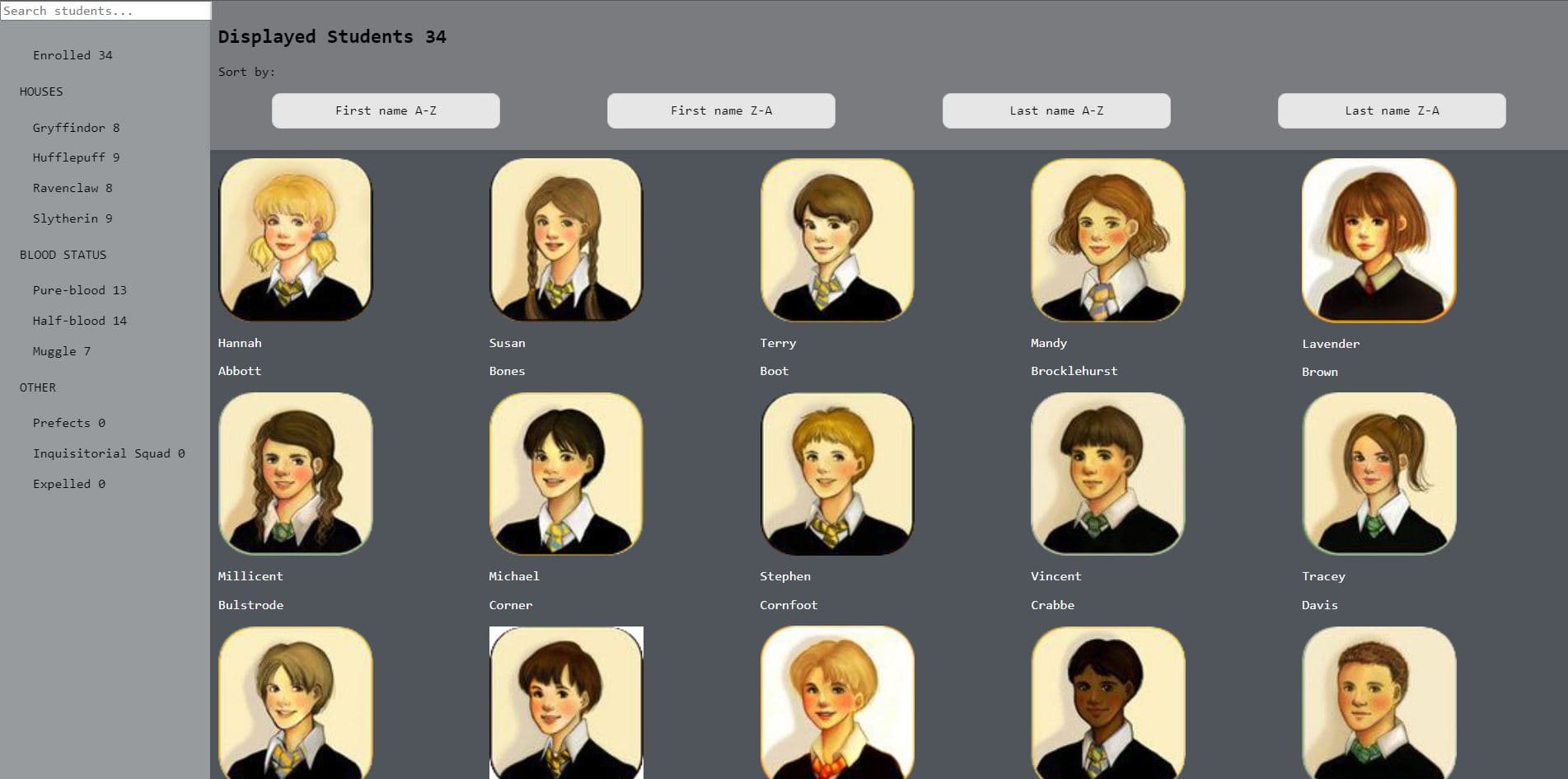 Hogwarts themed administrative dashboard